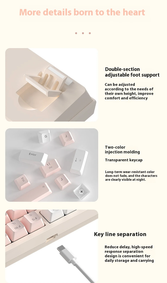 Mejora tu experiencia de escritura con este teclado mecánico rosa y blanco, una combinación perfecta de elegancia y rendimiento.