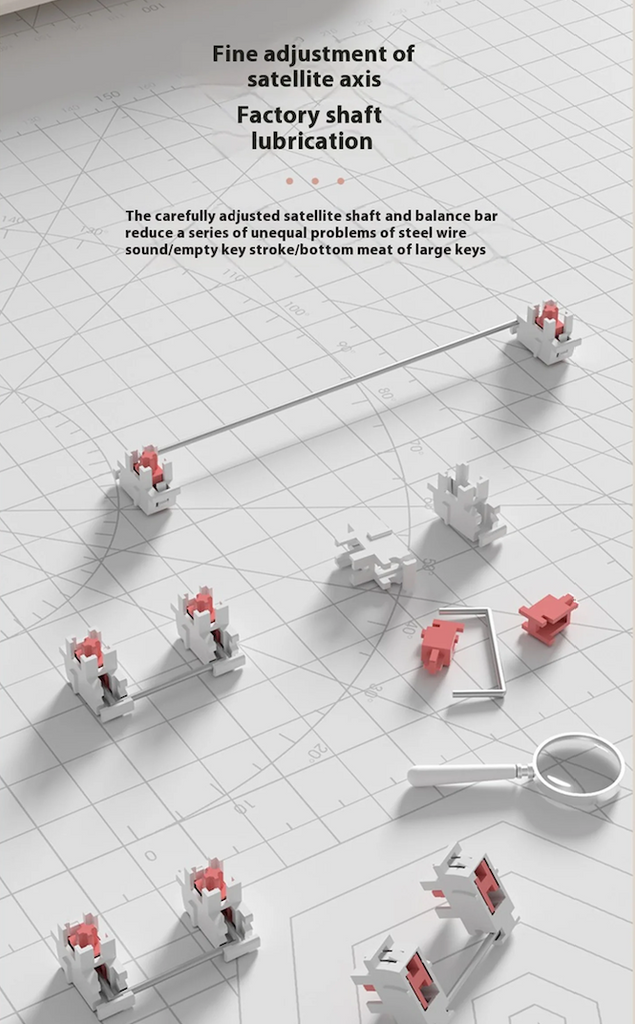 - Eje satélite afinado con lubricación de fábrica: Experimenta una pulsación de teclas más suave gracias a los ejes satélite ajustados con precisión y los ejes lubricados de fábrica, que reducen el ruido no deseado y mejoran la sensación general de las teclas grandes.