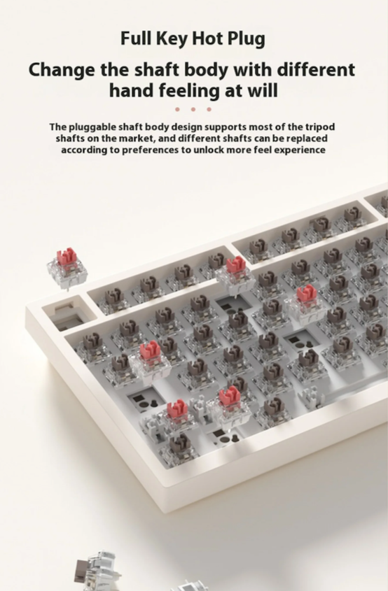 - Cambio rápido de teclas y Anti-Ghosting: Personaliza la sensación de tecleo con la función de cambio rápido de teclas. Cambia fácilmente los interruptores para adaptarlos a tus preferencias. Con la función anti-ghosting, cada pulsación se registra con precisión, incluso durante intensas sesiones de juego.