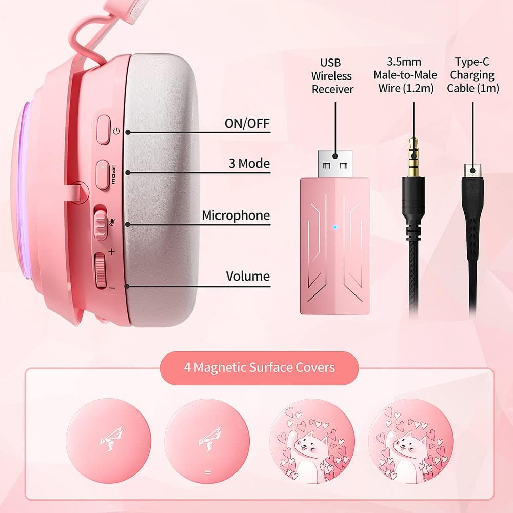 Los auriculares para juegos cuentan con efectos de iluminación RGB en las orejas de gato y los auriculares, lo que te permite cambiar entre 9 efectos de iluminación geniales diferentes con solo un toque. Auriculares kawaii ideales para configuraciones de juegos. Idea de regalo perfecta para chicas.