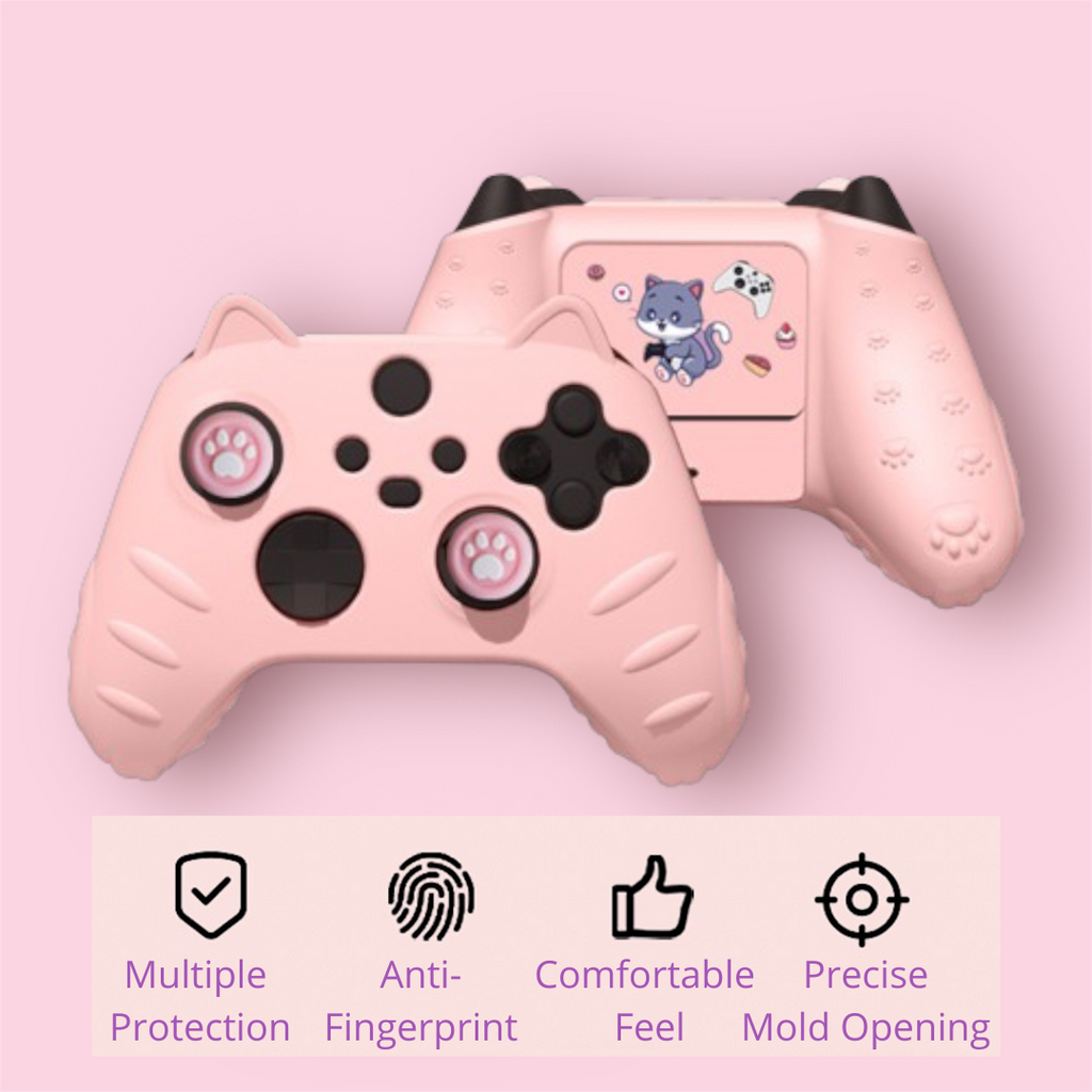 Presentamos nuestra adorable funda rosa de silicona con diseño de gatito gamer para el mando de la Xbox Serie X/S.