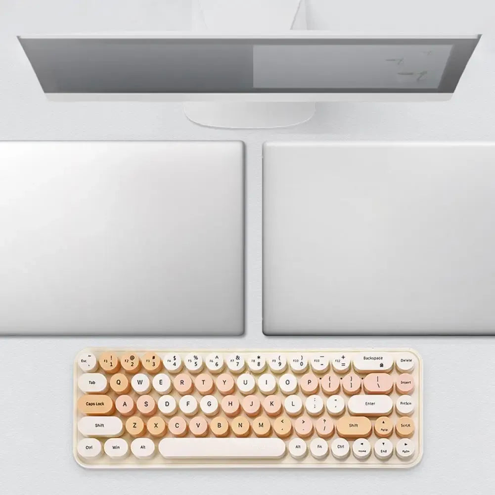 Con su aspecto de máquina de escribir retro y su diseño de teclas Dot, nuestro combo de teclado y ratón inalámbricos de color rosa desprende un estilo encantador y adorable.