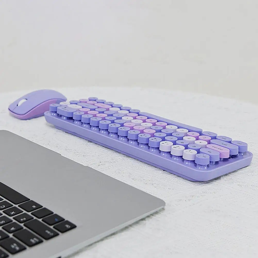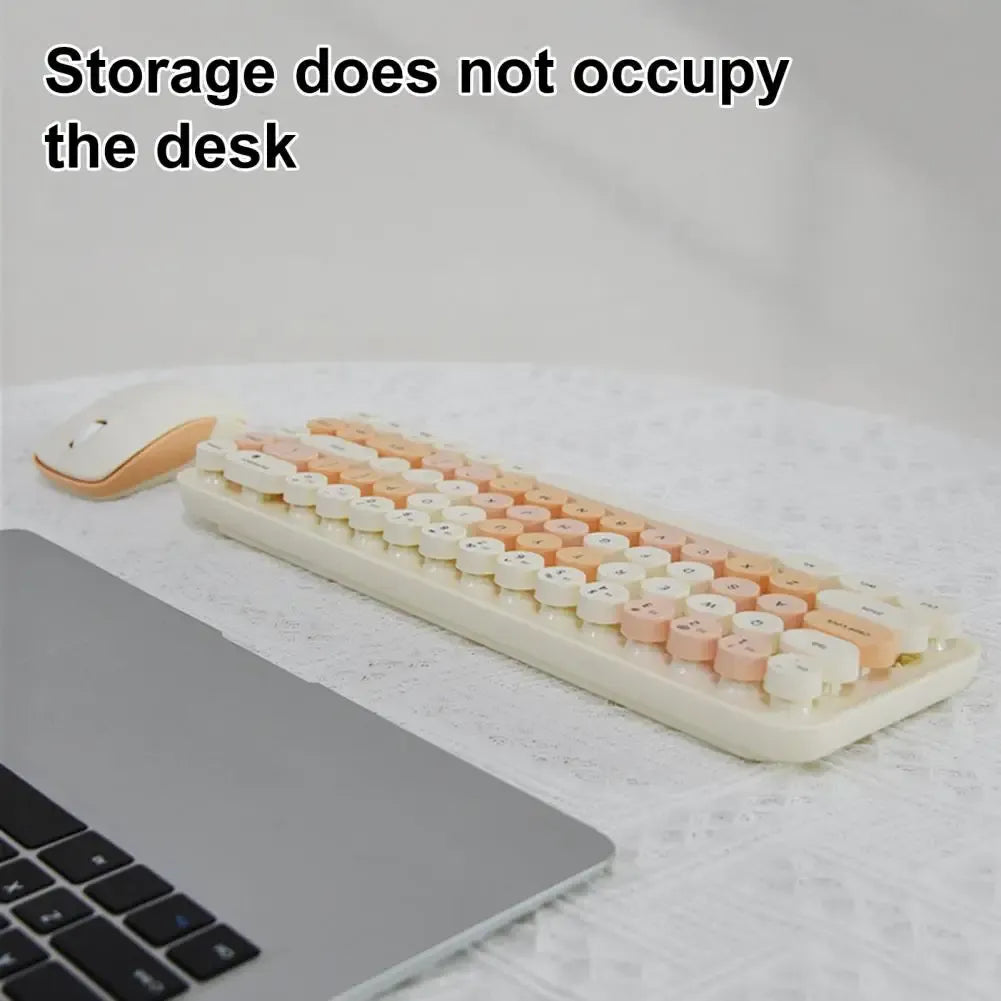 ✦ Combo de teclado y ratón: Reciba un teclado inalámbrico de estilo retro y un ratón óptico inalámbrico, con un bonito y colorido tema que es bonito y llamativo.