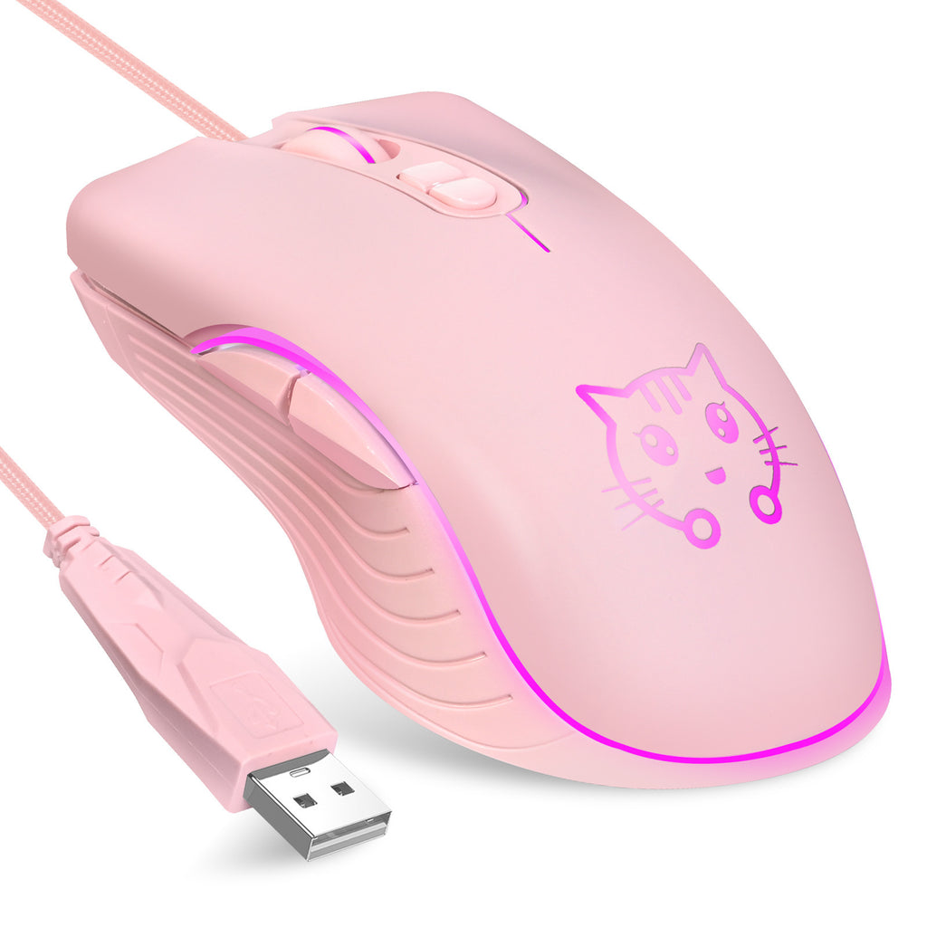Add a touch of cuteness to your setup with this adorable pink wired USB mouse.