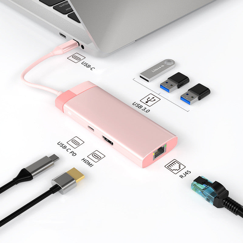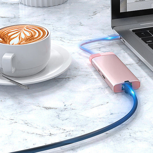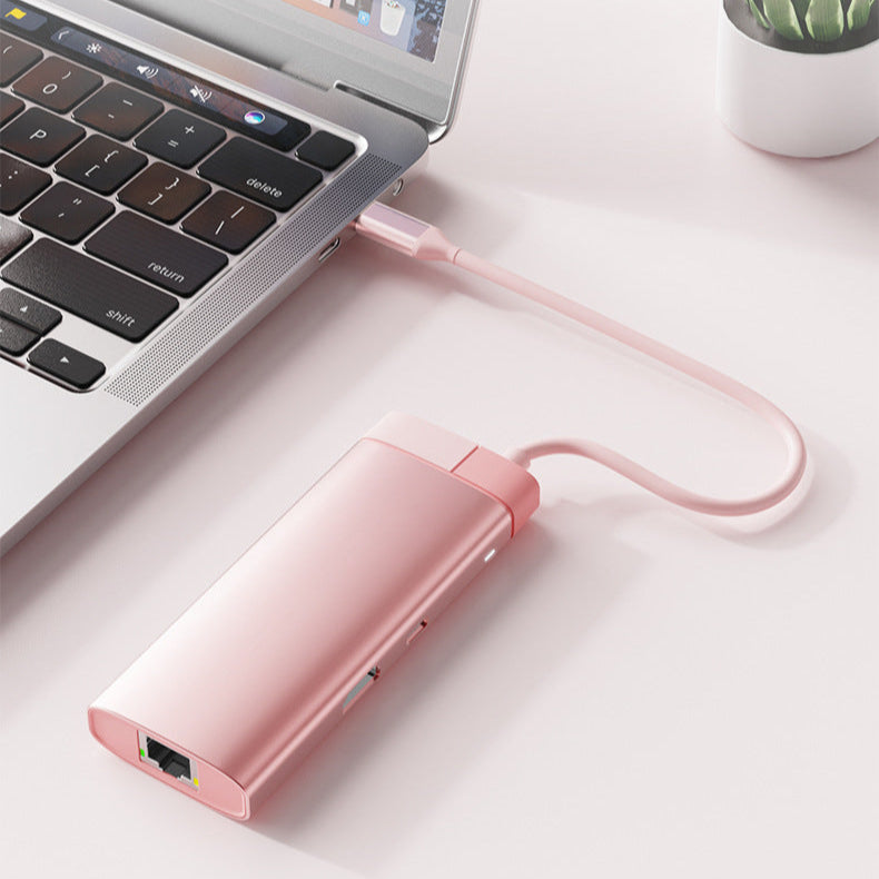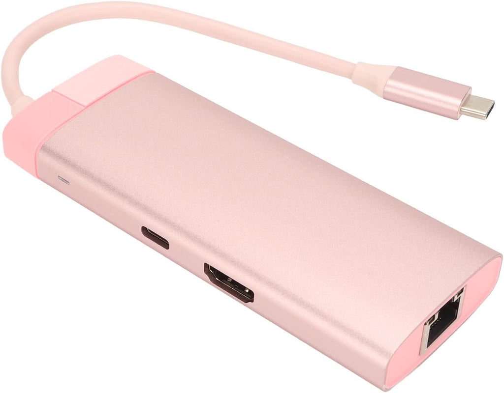 Dale un toque más rosado a tu espacio de trabajo o setup de entretenimiento con este elegante y compacto hub multifunción rosa.