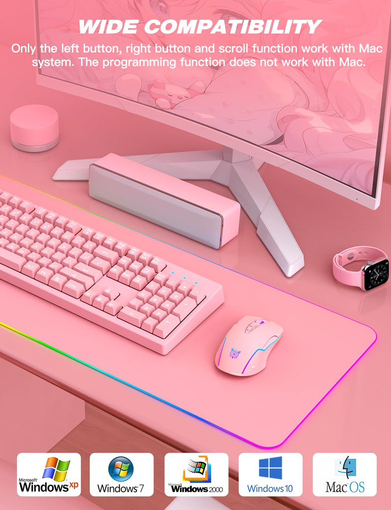 Actualiza tu gaming setup con nuestro ratón inalámbrico rosa.