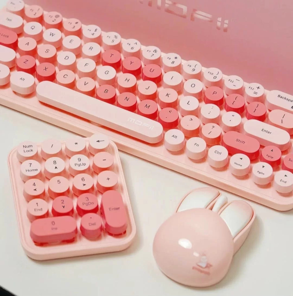 Adorable conjunto de Teclado Inalámbrico, Teclado Numérico y Ratón de Color Rosa.