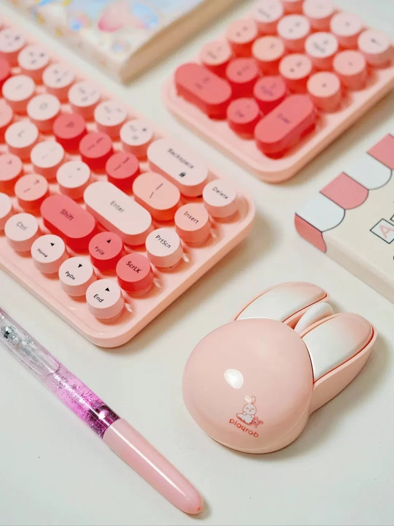 - Elegante ratón inalámbrico: El ratón rosa a juego complementa el conjunto, ofreciendo un desplazamiento suave y clics de precisión, ¡lo que lo hace tan divertido de usar como de ver!