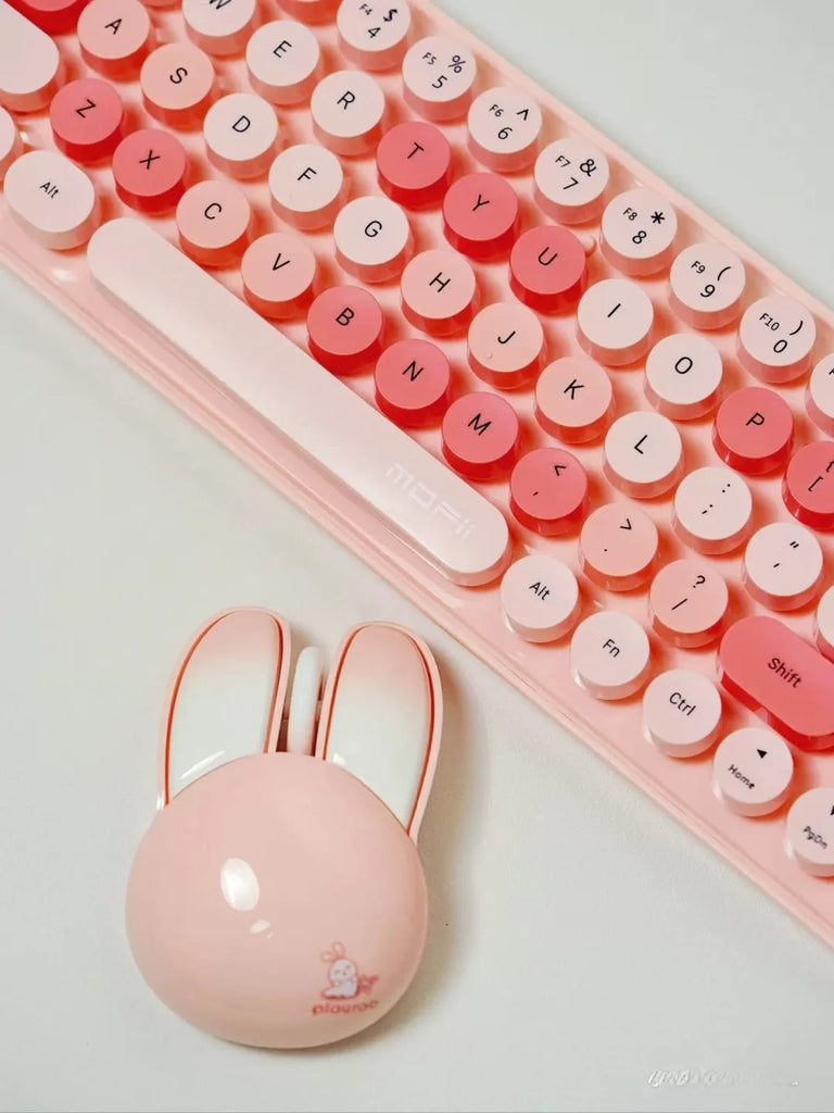 Este juego de teclado rosa no es sólo práctico, ¡es todo un símbolo! Desde su diseño retro inspirado en las máquinas de escribir hasta su cómoda funcionalidad inalámbrica, es la elección perfecta para quienes buscan añadir encanto a su espacio de trabajo.